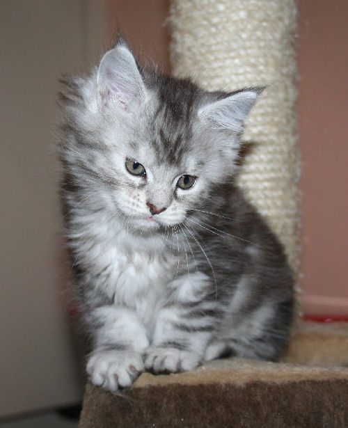 Coonie-Babies bis 6 Monate sind ziemlich problemlos mit Kindern, Katzen, Hunden etc. zu vergesellschaften, sie passen sich hervorragend an und respektieren die vorhandene Ordnung, ohne aus dem Auge zu verlieren, sich ihre eigene Position zu erarbeiten - dies geschieht jedoch von allen unbemerkt und mit einem unvergleichbaren Charme.
